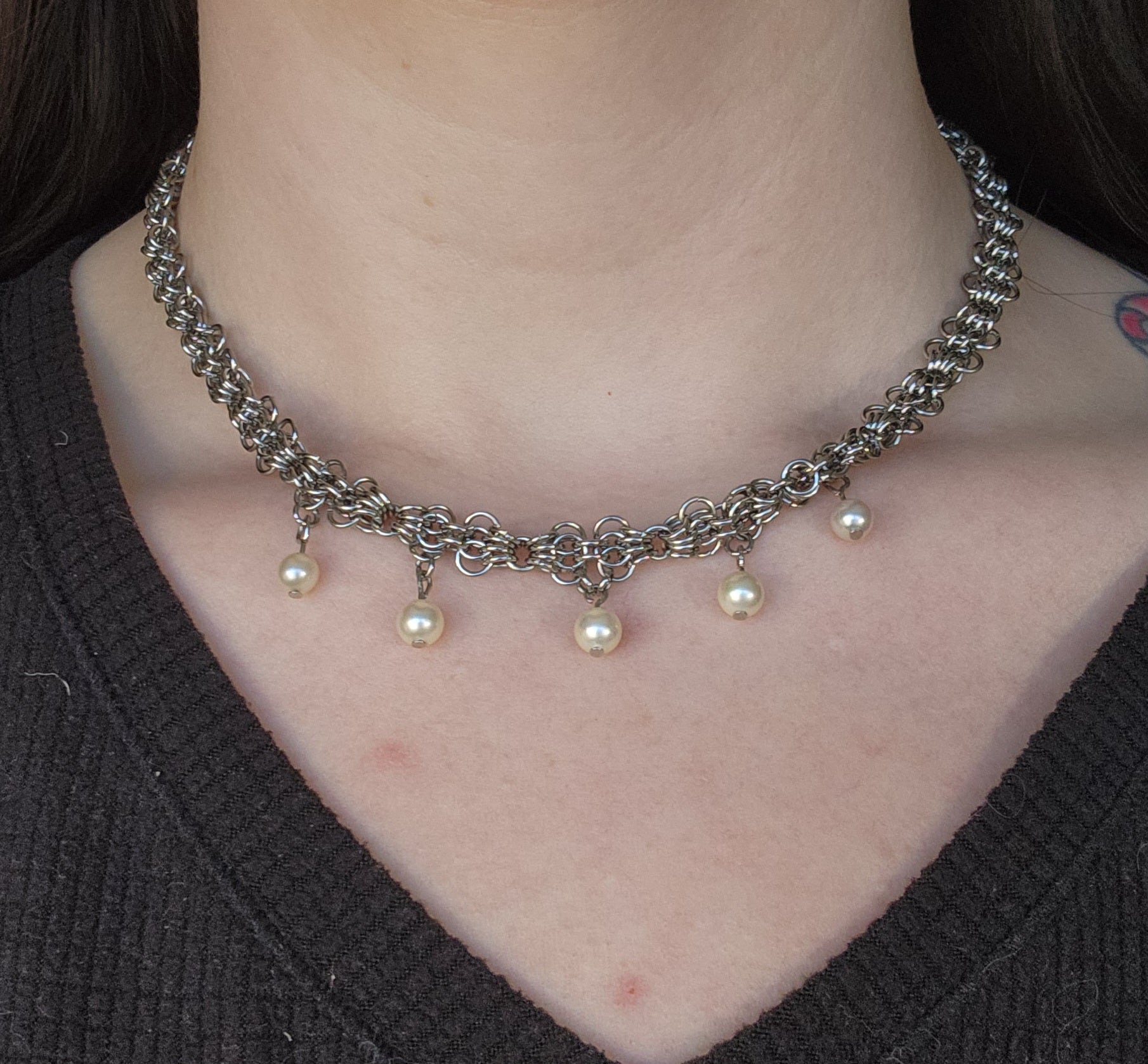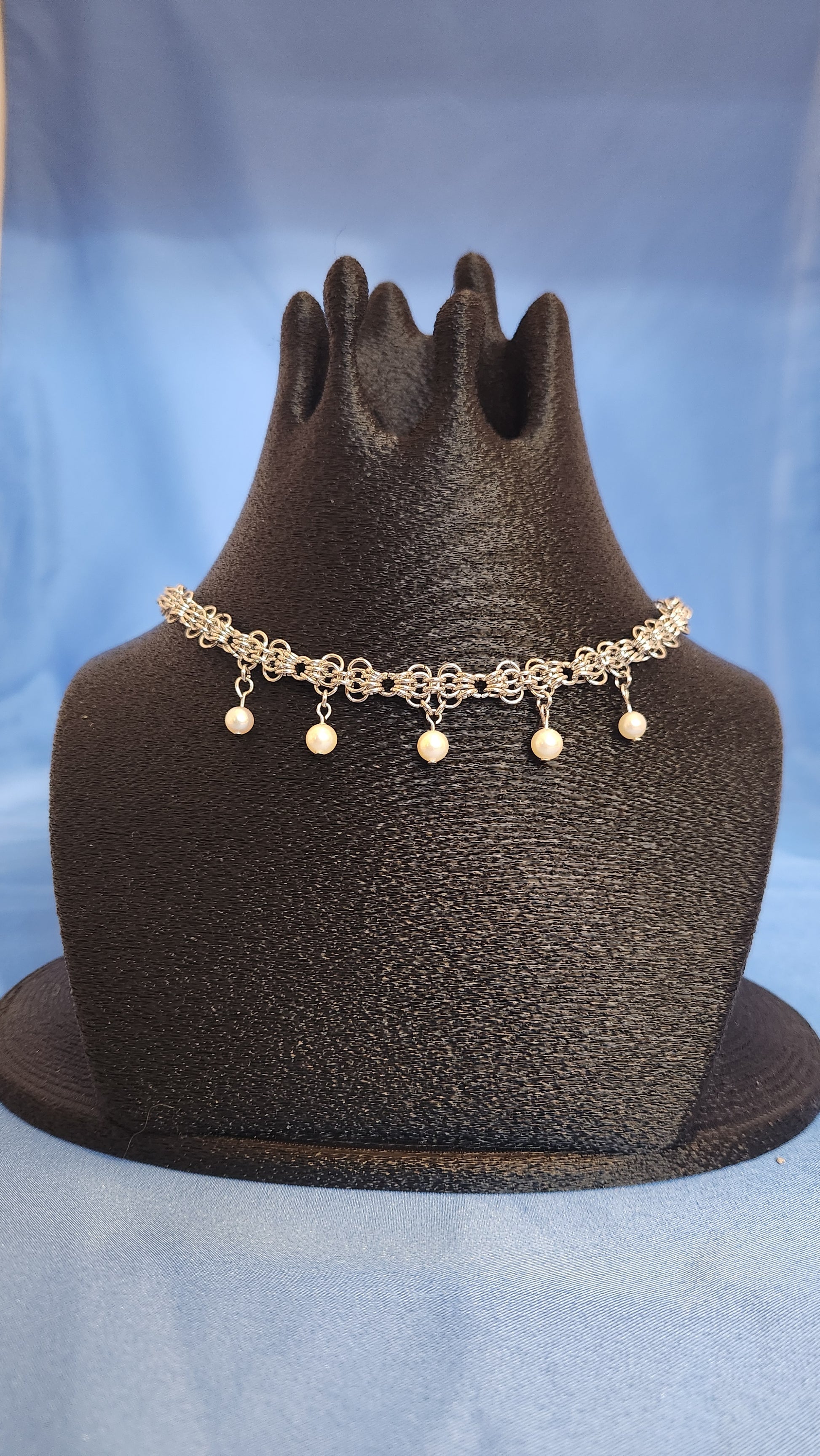 16 inch hand woven chain with vintage pearls.